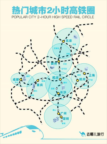從去哪兒火車(chē)票預(yù)約情況來(lái)看,2小時(shí)高鐵圈內(nèi)仍是旅客出游的主要目的地。北京2小時(shí)高鐵圈內(nèi),熱門(mén)目的地為天津、濟(jì)南、石家莊、秦皇島、大同;上海2小時(shí)高鐵圈,熱門(mén)目的地為杭州、蘇州、南京、湖州、寧波。