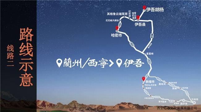 其中線路一“絲路雙珠風(fēng)情環(huán)線”主題為”“千年敦煌·萬(wàn)年胡楊”——敦煌至伊吾的奇幻之旅。自南一路向北,跨越敦煌、哈密、伊吾,連接甘肅、新疆兩地,全程路線大約640公里。