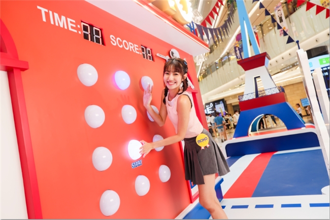 4.7米高的紅磨坊那極具標志性的紅色配上璀璨金色亮燈MOKO字樣,非常的搶眼。紅磨坊前設置擊劍場,由“無敵劍神”及“世一劍后”坐陣,邀請游客參與這場反應與速度的挑戰(zhàn),游戲限時30秒,隨著墻上拍拍燈隨機亮起,每按下一盞亮燈即可得分,讓游客在充滿歡樂的挑戰(zhàn)中,看看自己是否有成為新一代劍神劍后的實力。