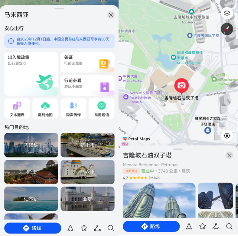 不用怕!Petal Maps是更適合中國寶寶的導航。它不僅原生默認支持中文界面和語言導航,還能提供覆蓋全球 160+ 國家和地區(qū)的詳細地圖數(shù)據(jù),豐富的地理位置信息和精準的路線規(guī)劃,能帶你輕松抵達目的地,發(fā)現(xiàn)隱藏的景點和美食。