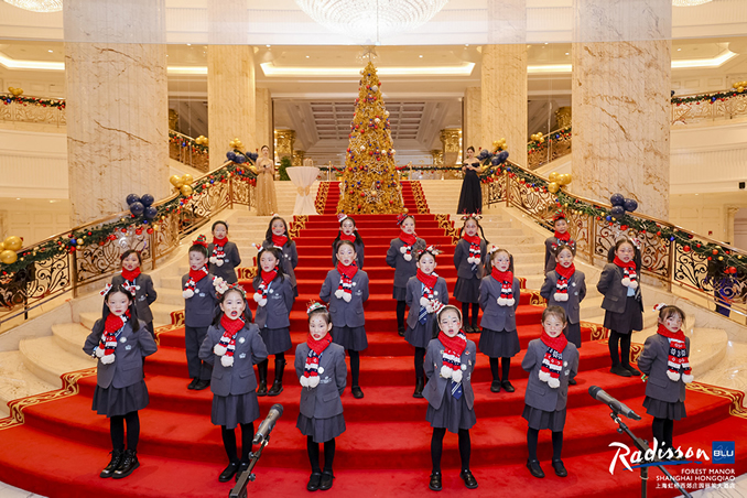 在一片歡呼聲中,來自上海閔行區(qū)諾達(dá)雙語學(xué)校的唱詩班以及風(fēng)笛樂隊表演為現(xiàn)場增添了濃厚的節(jié)日氛圍。緊接著,酒店總經(jīng)理盛志驊先生和酒店業(yè)主代表張明藝先生一同點亮了圣誕樹,開啟了圣誕魔幻之旅。