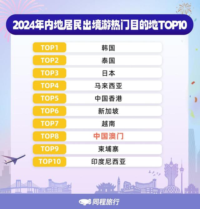 澳門穩(wěn)居內(nèi)地居民出境游前十大目的地