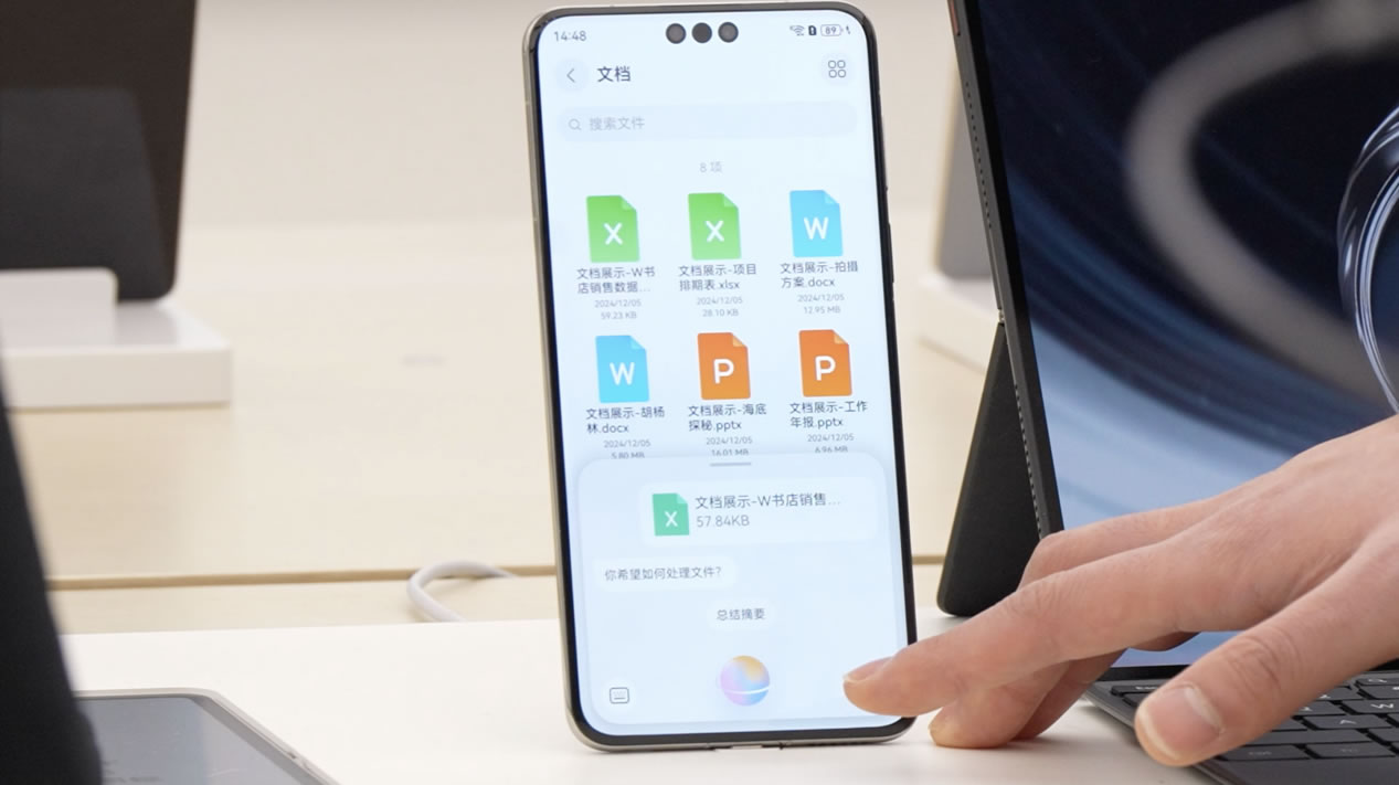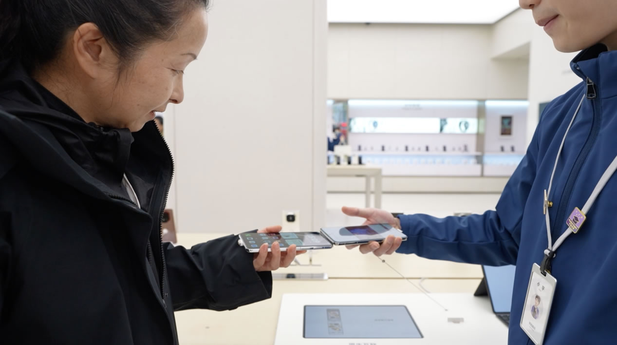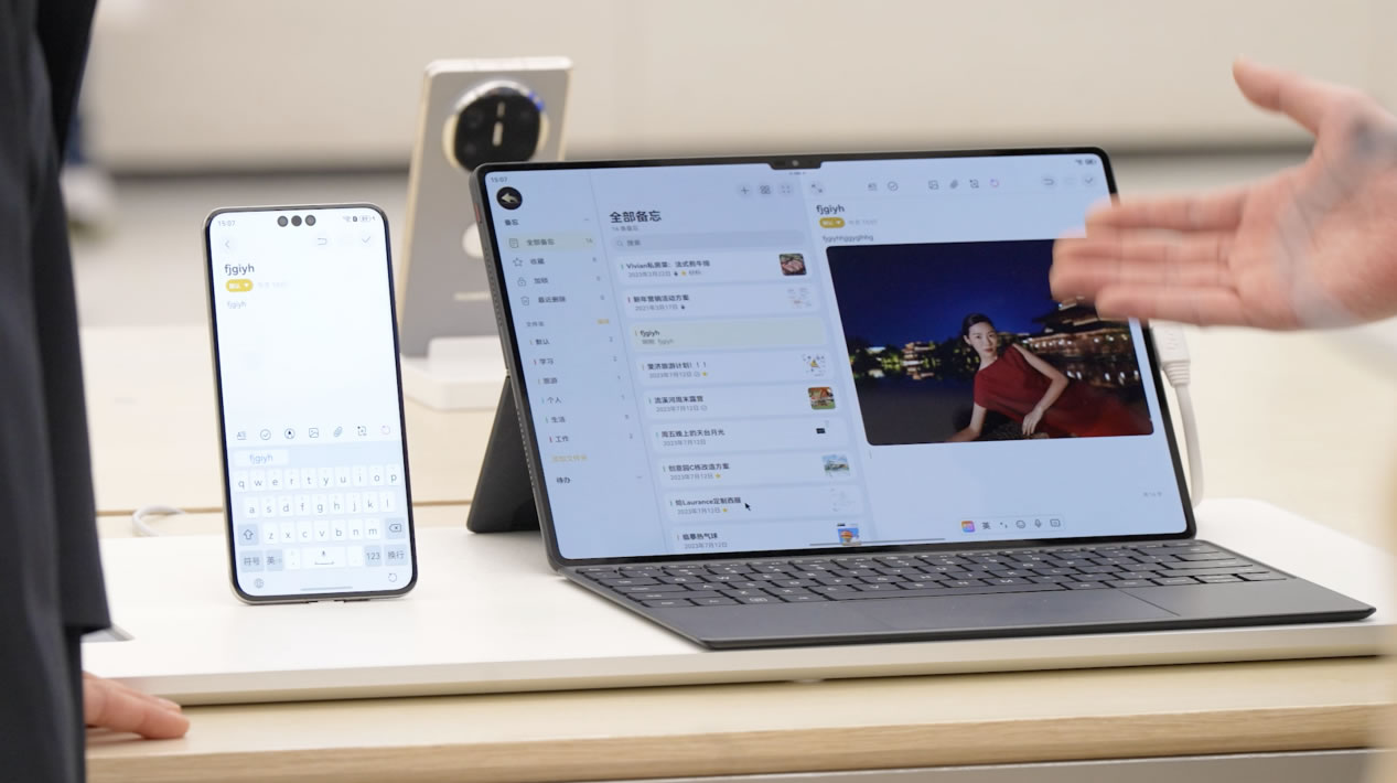 十一點,大家聚在一起頭腦風(fēng)暴。張晴把方案資料共享給同事,照片、視頻、文件,甚至正在觀看的網(wǎng)站,都可以通過「華為共享」直接傳輸。面對面辦公就更方便了,兩臺手機「碰一碰」,傳送門就出現(xiàn)了。
