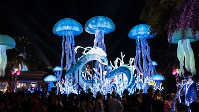 2025年1月29日,大年初一,乙巳蛇年,復星旅文·三亞亞特蘭蒂斯舉辦的以“龍蛇換守 七子賀歲”為主題的燈會嘉年華憑借多元化的創(chuàng)新夜間消費場景,持續(xù)吸引游客,推動消費熱潮。這場活動融合傳統(tǒng)與現(xiàn)代、藝術(shù)與科技,為游客帶來沉浸式的夜間文旅體驗,成為海南夜經(jīng)濟的新亮點。