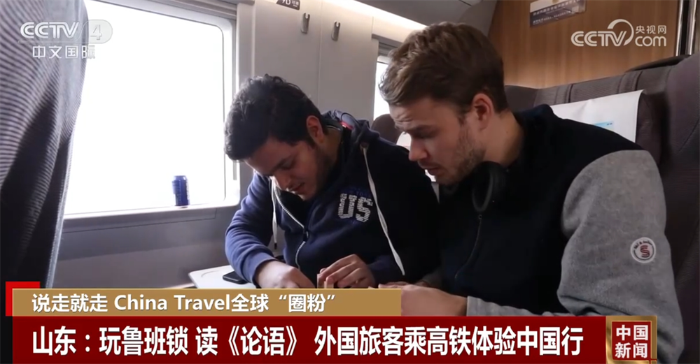 隨著過境免簽外國人在境停留時(shí)間延長為240小時(shí)等政策的實(shí)施,便捷的中國高鐵也成為了越來越多外國游客游覽中國的一種選擇。在青島開往濟(jì)南東方向的G6910次列車上,來自挪威的旅客哈蘭正興趣盎然地和來自埃及、同樣喜歡中國傳統(tǒng)建筑榫卯結(jié)構(gòu)的同伴易卜拉欣一起研究魯班鎖的玩法。