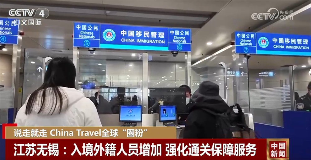 隨著外國人使用過境免簽新政入境人數(shù)的增加,為更好服務(wù)外籍人員,無錫公安出入境管理部門提前制定預(yù)案,全力做好通關(guān)保障服務(wù)。(來源:央視網(wǎng))