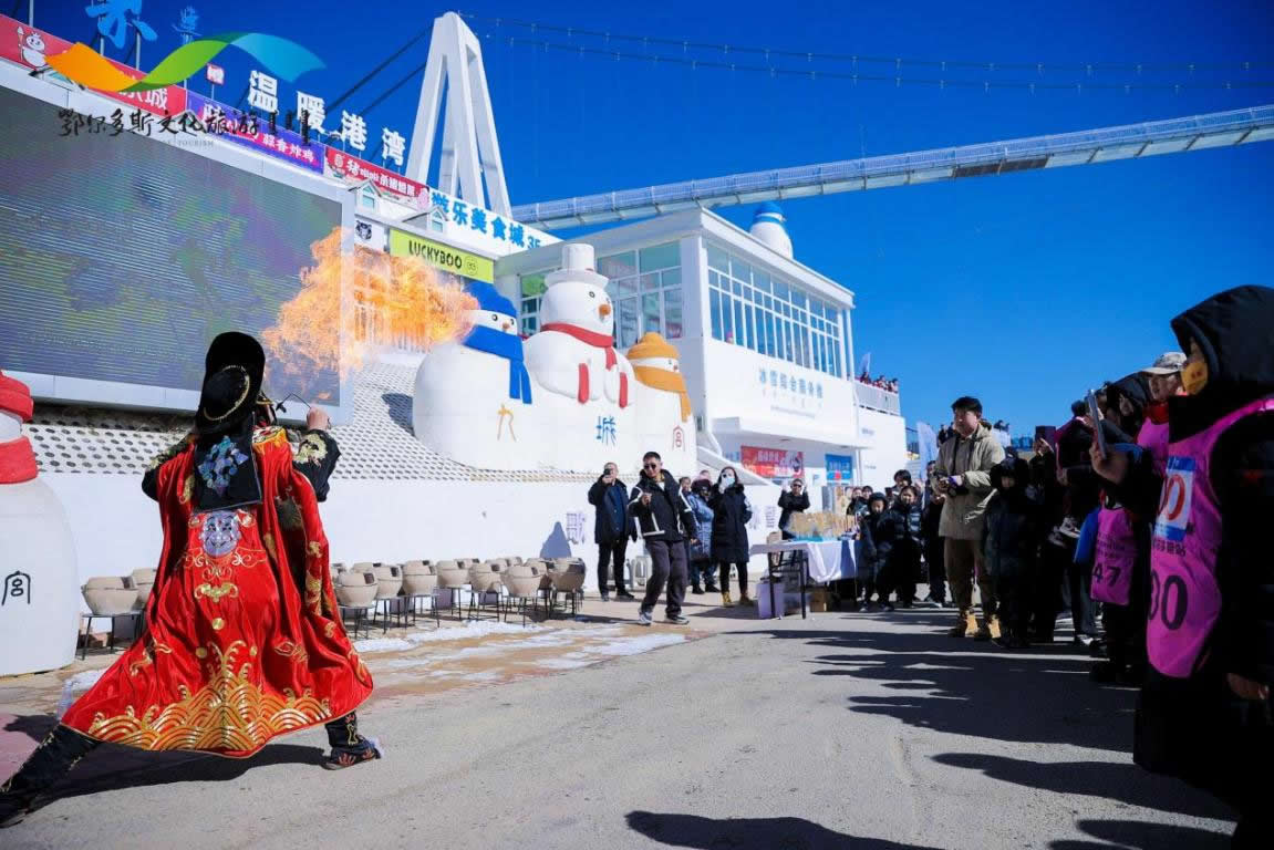 品美食、觀演藝、玩旅拍、住民宿、看比賽,本次“跟著賽事去旅行”2025暖城鄂爾多斯冰雪嘉年華內容精彩紛呈,充分彰顯了文旅體融合發(fā)展的新魅力。在特色文藝展演中,鄂爾多斯歌舞熱情奔放,盡顯特色民俗風情;IP動漫互動巡游,讓孩子們歡笑不斷;非遺傳人的現(xiàn)場展示,激起大家對傳統(tǒng)文化的美好傳承與向往;國潮達人旅拍,為游客留下最美的瞬間;還有九城宮老口味富貴饸饹面、銅鍋涮肉等美食應有盡有。在住宿方面,為選手和游客精心準備了陜北特色的窯洞,體驗民俗風情;比賽之余,深入響沙灣等景區(qū),深度體驗暖城的獨特魅力。