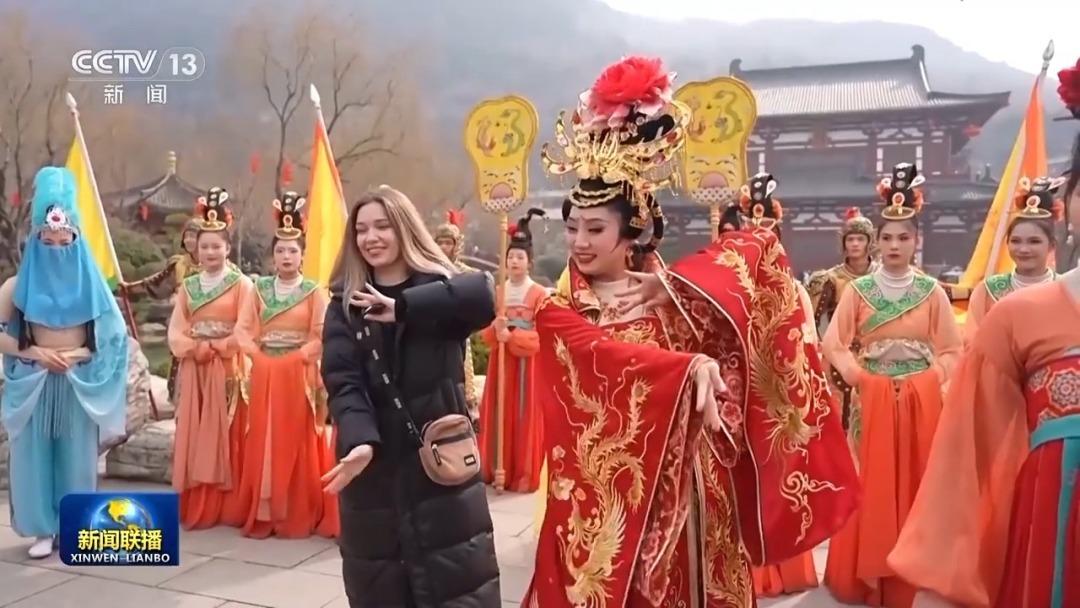 在陜西,多個(gè)國家的游客、留學(xué)生在華清宮等景區(qū),體驗(yàn)中國傳統(tǒng)文化。在四川,來自美國、俄羅斯、西班牙等國的游客,通過現(xiàn)場觀影、文化體驗(yàn)、古跡探訪等多種形式感受巴蜀文化。