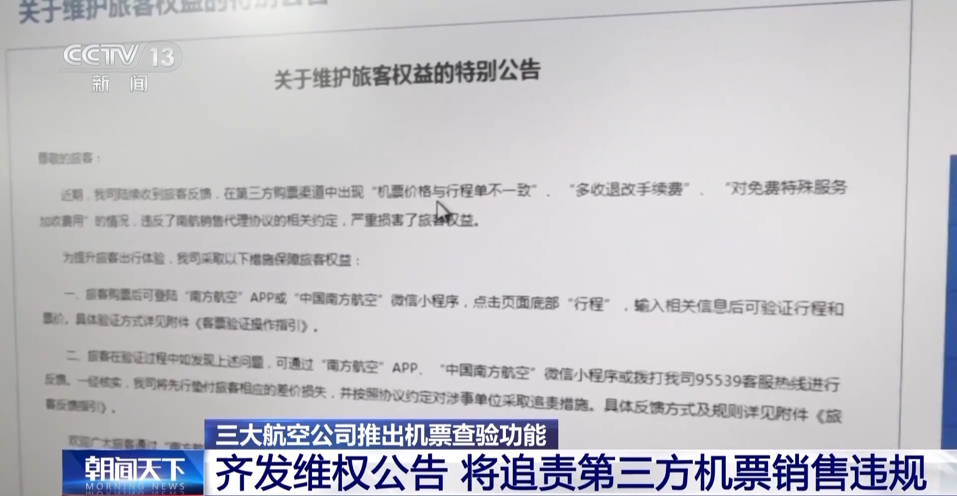 中國(guó)法學(xué)會(huì)消費(fèi)者權(quán)益保護(hù)法研究會(huì)副秘書長(zhǎng) 陳音江:我覺得對(duì)規(guī)范票務(wù)市場(chǎng)、倒逼機(jī)票代理和平臺(tái)誠(chéng)信守法經(jīng)營(yíng)也具有積極的作用。并且能夠從整體上來促進(jìn)航司服務(wù)的提升,也能對(duì)切實(shí)維護(hù)消費(fèi)者合法權(quán)益起到一個(gè)重要的保障作用。(來源:央視新聞)