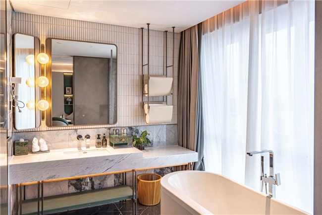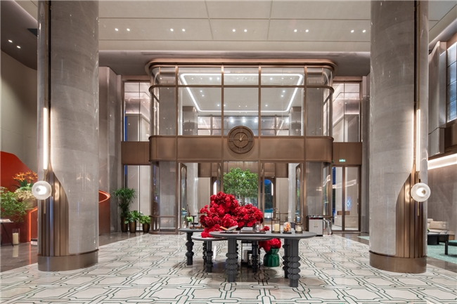 酒店由法國(guó)設(shè)計(jì)師Jave操刀設(shè)計(jì),以"楚韻新譯"為理念,巧妙融合現(xiàn)代奢華元素與荊楚文化傳統(tǒng)特色,打造出既具時(shí)代風(fēng)尚又飽含文化底蘊(yùn)的獨(dú)特空間。大堂主體采用大面積玻璃幕墻,搭配莫蘭迪紅綠配色點(diǎn)綴,白天,陽(yáng)光透過(guò)玻璃傾灑,大堂內(nèi)溫馨明亮,宛如璀璨水晶宮殿;夜晚,借助精妙燈光設(shè)計(jì),呈現(xiàn)出迷人光影效果,成為城市夜色中耀眼的明珠。