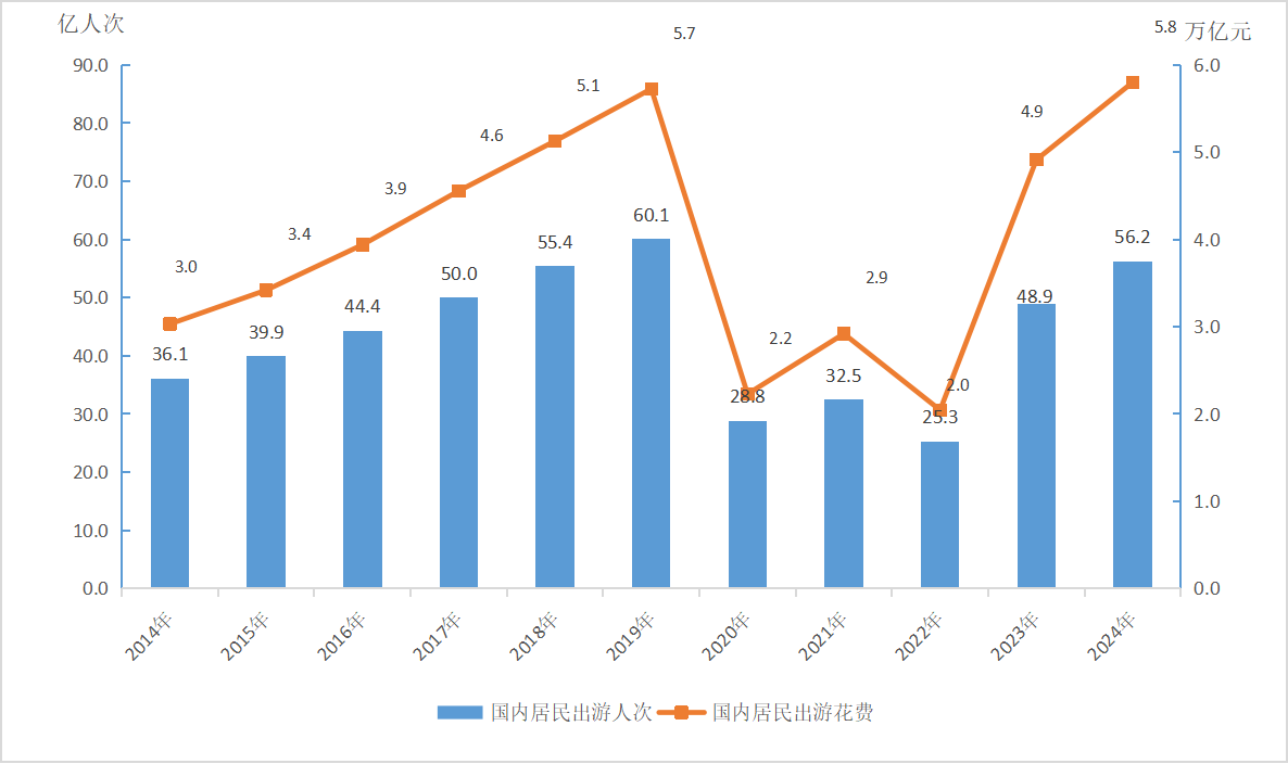 圖5:2014—2024年國(guó)內(nèi)旅游發(fā)展情況