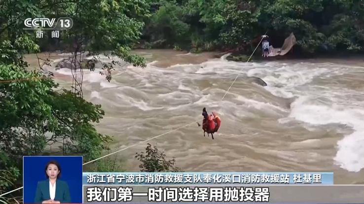 前段時間,受強(qiáng)降雨影響,浙江省寧波市奉化區(qū)溪口鎮(zhèn)附近河水水位暴漲。在升綱村附近河岸邊露營過夜的兩人被水圍困。