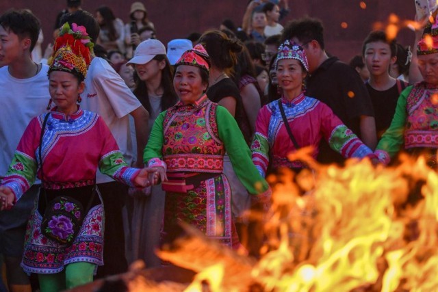 “不用懂專業(yè)舞步,跟著大家一起,怎么開心怎么跳!” 在大理州巍山縣拱辰樓廣場,躍動(dòng)的篝火映紅了古老的城墻,來自西安的游客劉欣已融入當(dāng)?shù)貞c;鸢压(jié)的彝族打歌隊(duì)伍中。“打歌隊(duì)員帶領(lǐng)大家圍著篝火唱跳,簡直太開心了!”她說。