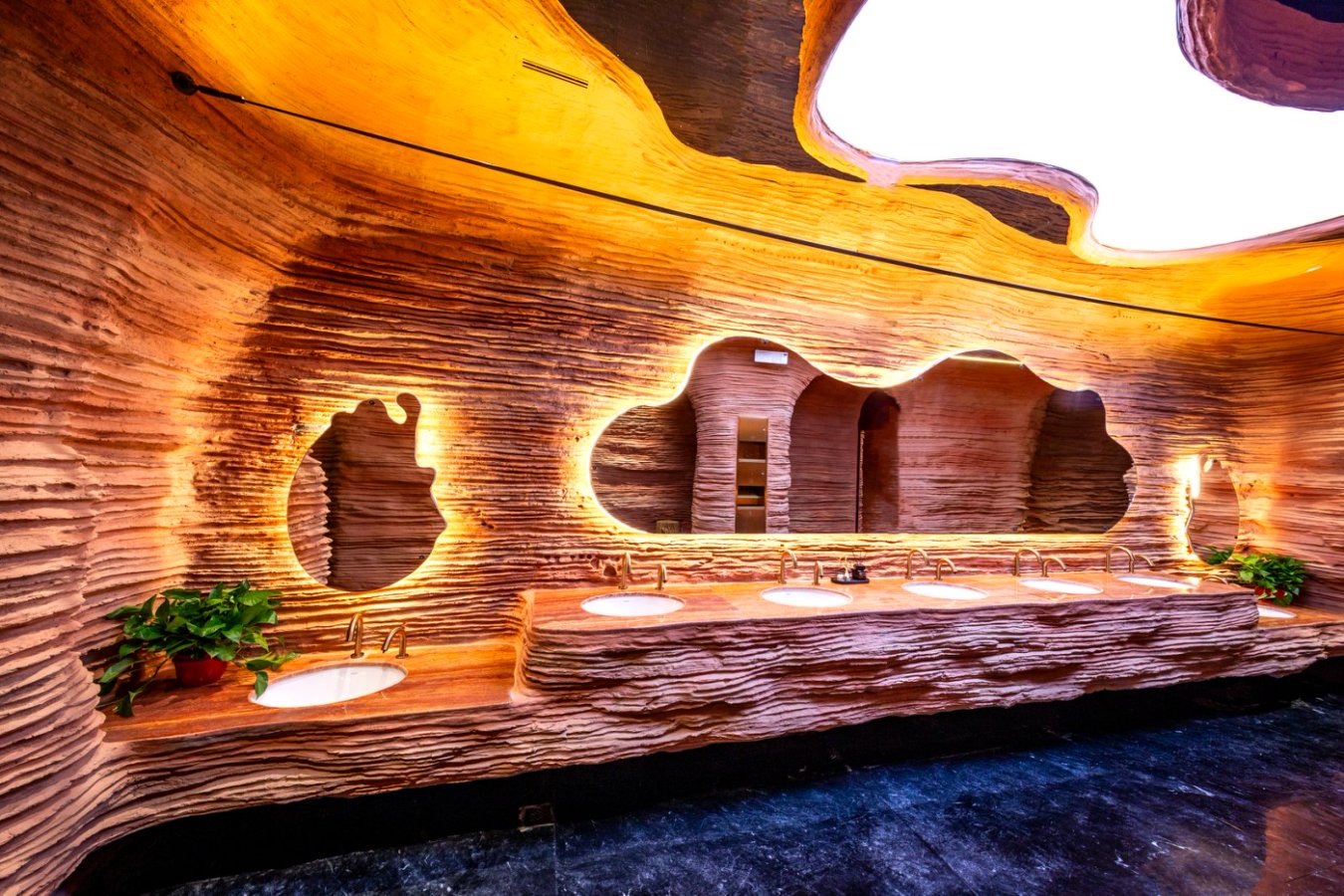 據(jù)了解,該項(xiàng)目對(duì)敦煌夜市“八景樓”進(jìn)行功能再造,融合敦煌文化基因:一層以“莫高至善”為主題,二層則呈現(xiàn)“雅丹秘境”,營(yíng)造雄渾奇幻的空間意境。步入其中,便能感受到敦煌文化與九牧衛(wèi)浴產(chǎn)品的完美交融,一位來(lái)自北京的游客表示:“這和我印象中的公廁完全不一樣,升級(jí)后的超白玻幕墻與毗鄰的沙州樓形成震撼的 ‘古今對(duì)話’,夜幕降臨時(shí),燈光與幕墻交相輝映,宛如一座小型藝術(shù)館。”