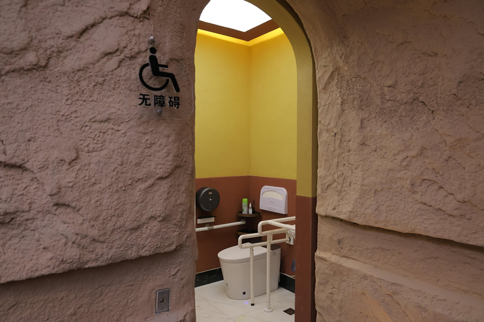 此外,九牧創(chuàng)新性地打造近千平米的“全齡友好型人文關(guān)懷樞紐”:母嬰群體專享獨(dú)立哺育室,配備抗菌護(hù)理臺(tái)、兒童安全座椅及自清潔穹頂系統(tǒng),打造潔凈溫馨的親子空間;長(zhǎng)者及殘障人士無(wú)障礙專區(qū),設(shè)置低位感應(yīng)洗手池、防滑安全扶手及智能語(yǔ)音導(dǎo)航,實(shí)現(xiàn)自主無(wú)憂通行;還可通過(guò)潮汐衛(wèi)生間動(dòng)態(tài)調(diào)節(jié)廁位資源,解決代際照護(hù)如廁難題;全齡游客共享多功能服務(wù)島——休憩區(qū)配備茶飲自助機(jī)、行李寄存柜及文化展陳,滿足從嬰幼兒到銀發(fā)族的多元需求。
