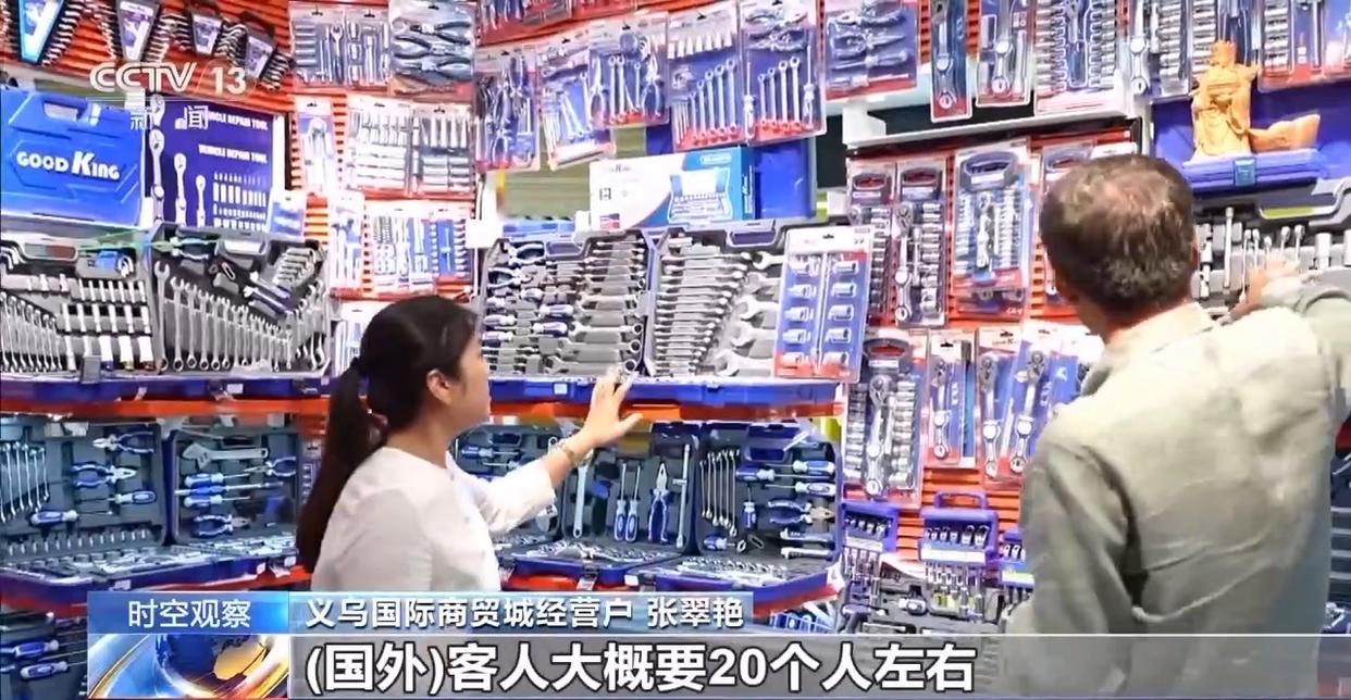義烏國際商貿(mào)城經(jīng)營戶 張翠艷:去年我們每天進店的國外客人可能10個人,今年夏天我們每天進店的國外客人大概20個人左右,明顯國外客人增加比較多。有很多國家的客人,中亞的比較多,最近非洲的、南美的也很多。