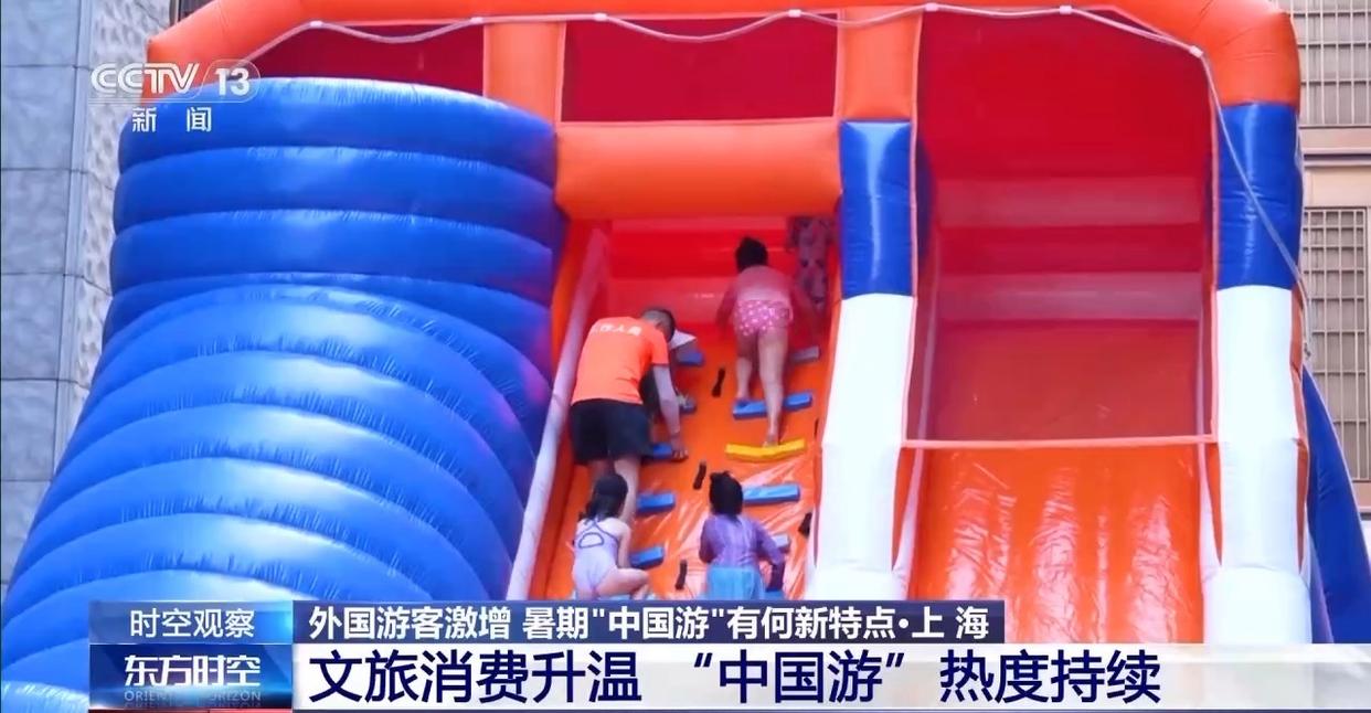 “清涼經(jīng)濟”也是這個夏天的熱門打開方式。7月以來,上海外灘搬來了一座暑期限定的水上樂園,帶領(lǐng)市民游客開啟玩水模式。打水仗、蕩秋千、爬索道,每個角落都藏著意想不到的清涼驚喜。