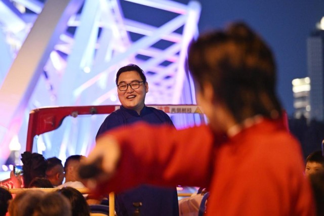 “相聲巴士”的定制化夜間游覽線路,將古文化街、鼓樓、意式風情區(qū)、解放橋、天津站世紀鐘、津灣廣場、望海樓、“天津之眼”摩天輪等20余處地標景點串聯(lián)成線。演員在途中結(jié)合景點進行講解,讓觀眾除了能享受海河兩岸夜景和沉浸式津味相聲外,還能深入了解天津歷史,品味天津特色文化。