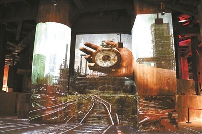 走進(jìn)三高爐,以爐芯為載體放映的數(shù)字片《致敬鋼鐵》,呈現(xiàn)出獨特的觀影效果。爐芯、墻壁、地面,瞬間變?yōu)槠聊,觀眾可360度沉浸在鋼鐵故事中,了解北京乃至中國鋼鐵工業(yè)發(fā)展有重要貢獻(xiàn)的“功勛高爐”的歷史。