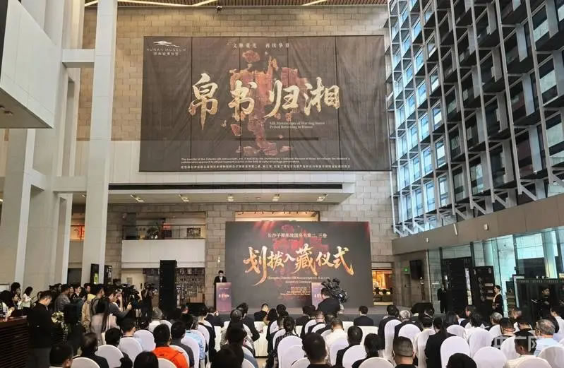 長沙子彈庫戰(zhàn)國帛書第二、三卷劃撥入藏儀式在湖南省博物館舉行(央廣網(wǎng)記者黃珂嵐 攝)