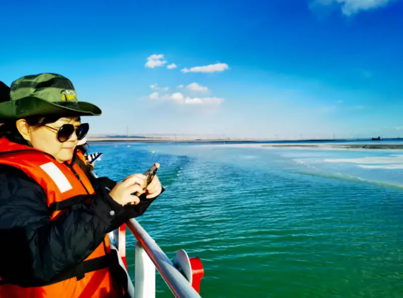 10月14日,由中共海西州委宣傳部主辦、西海都市報社承辦的“紅杞風(fēng)光別樣美 ”活動,走進(jìn)海西蒙古族藏族自治州烏蘭縣,研學(xué)團(tuán)隊來到茶卡鹽湖,乘坐游船觀光,湖面上駛來的大型運鹽船讓外省記者及學(xué)生不由感嘆:沒想到“天空之鏡”還有另外一種獨特景致。湖面上駛來的大型運鹽船吸引了研學(xué)團(tuán)隊成員的目光。采鹽船正在鹵水中作業(yè),發(fā)出低沉的轟鳴,空氣中彌漫著咸潤的氣息。研學(xué)的同學(xué)通過實地觀察鹵水的蒸發(fā)、結(jié)晶過程,將課本上的地理、化學(xué)知識,與這片壯麗的現(xiàn)實場景融會貫通。