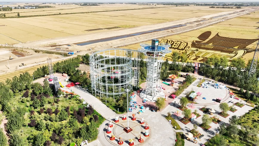 這是農(nóng)文旅深度融合發(fā)展的創(chuàng)新實(shí)踐。作為新中國(guó)第一個(gè)集體農(nóng)莊的誕生地,星火村曾創(chuàng)下多個(gè)“第一”,第一個(gè)拖拉機(jī)站、第一個(gè)農(nóng)民水稻科研小組、第一個(gè)寫(xiě)入小學(xué)課本的新中國(guó)集體農(nóng)莊.....如今,這份紅色基因與5000平方米生態(tài)稻田、朝鮮族民俗風(fēng)情深度交融,催生出獨(dú)特的文旅IP。登上40余米高的星火塔,可俯瞰稻海翻波;體驗(yàn)430米玻璃水滑梯,能感受速度與清涼的碰撞;在星火時(shí)光供銷(xiāo)社追憶往昔,于星火工坊體驗(yàn)打糕制作,讓游客在一靜一動(dòng)間觸摸歷史溫度與民俗魅力。自景區(qū)開(kāi)園開(kāi)始,首屆非遺美食文化節(jié)、寒地小龍蝦節(jié)、稻種嘉年華等特色創(chuàng)意活動(dòng)相繼舉辦,共計(jì)吸引客流108萬(wàn)余人,帶動(dòng)收入8600萬(wàn)元,印證了“以文塑旅、以旅興農(nóng)”的鮮活成效。