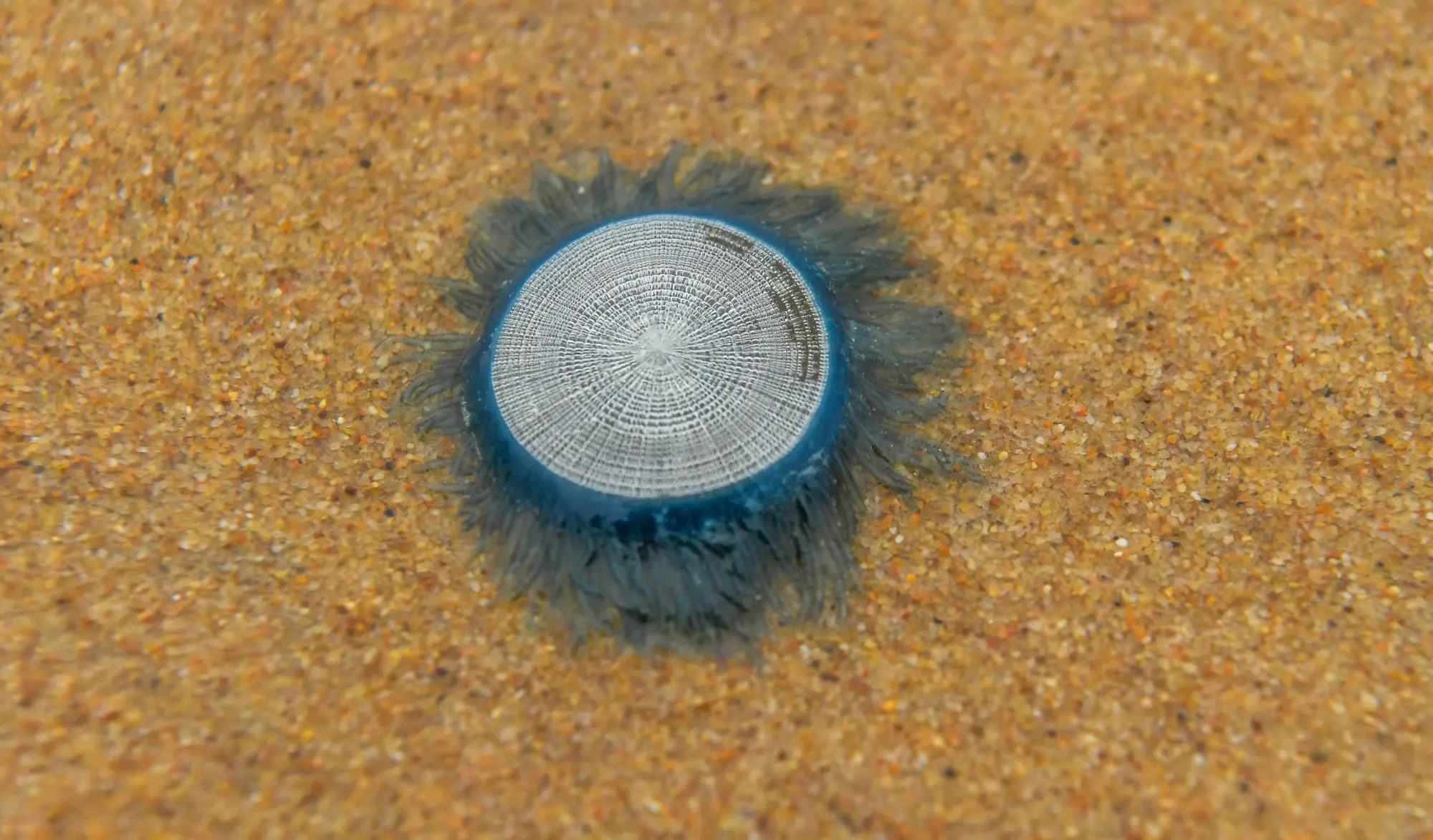 海灘上出現(xiàn)的銀幣水母(央廣網(wǎng)發(fā) 康登淋 攝)