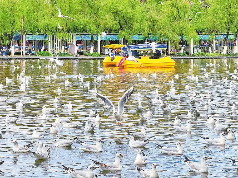 10月29日清晨,翠湖公園南湖塘迎來(lái)了今年首批約60只紅嘴鷗,拉開(kāi)本年度昆明人與紅嘴鷗“冬季之約”的序幕。記者從翠湖公園獲悉,截至11月6日,飛臨翠湖的紅嘴鷗數(shù)量已激增至約2000只。