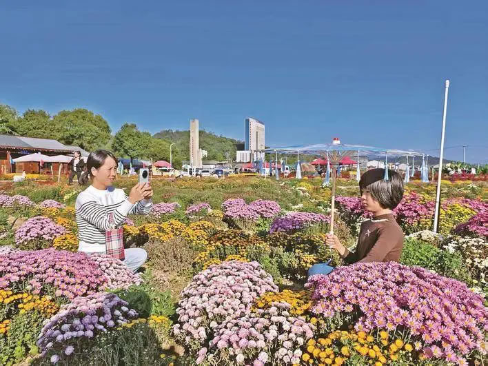 初冬暖陽(yáng)下,沙縣區(qū)中國(guó)菊花種質(zhì)資源保存中心南方分中心基地內(nèi)繁花似錦。30多個(gè)菊花品種次第綻放,切花菊、地被菊、食用菊等繽紛鋪展,10余畝菊田進(jìn)入最佳觀賞期,吸引眾多市民前來(lái)賞菊。