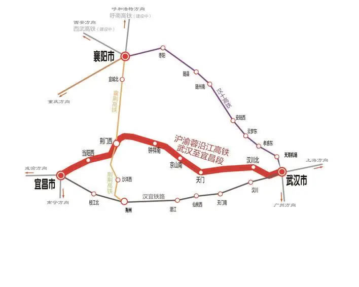 漢十高鐵武漢至襄陽段、襄荊高鐵、滬渝蓉沿江高鐵武宜段,共同組成了漢襄宜“金三角”1小時高鐵環(huán)線。
