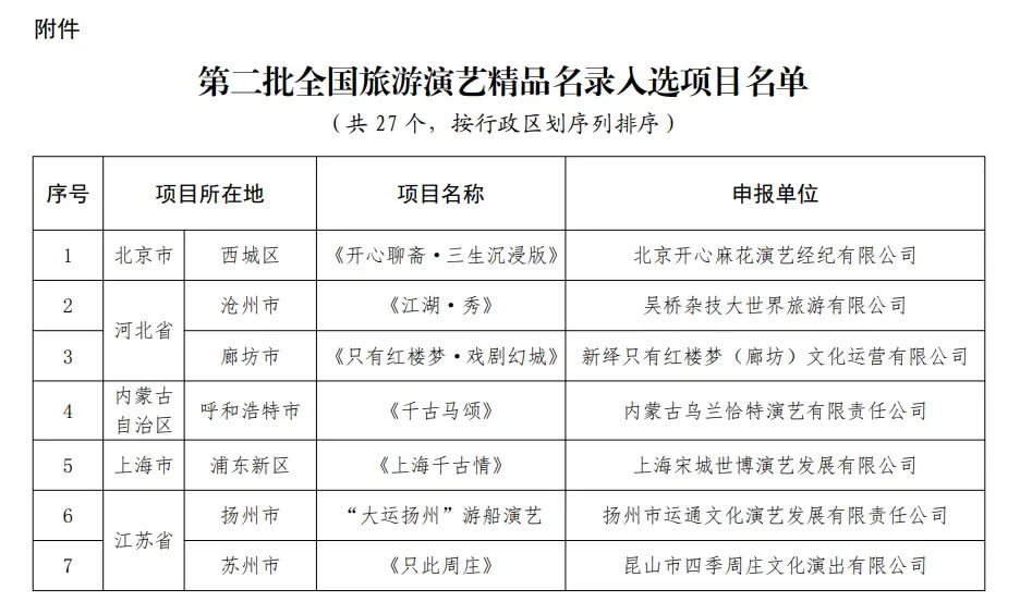 第二批全國(guó)旅游演藝精品名錄發(fā)布 27個(gè)項(xiàng)目入選