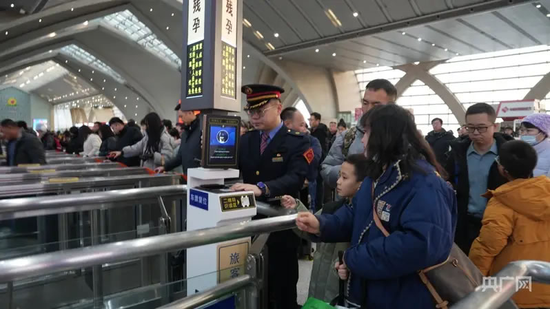 火車(chē)站工作人員正在引導(dǎo)乘客通過(guò)閘機(jī)(央廣網(wǎng)發(fā) 銀川火車(chē)站供圖)