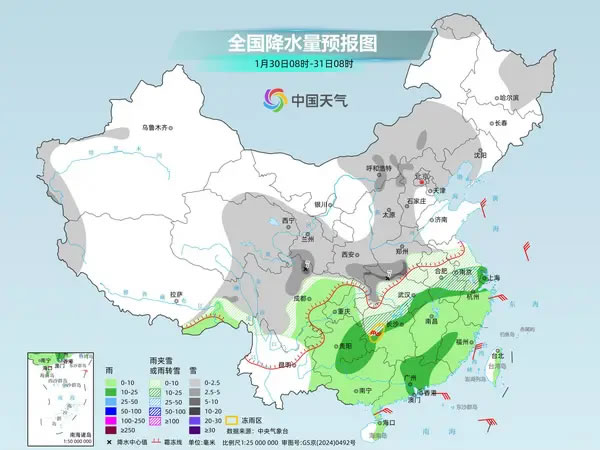 明天,新疆北部、西藏東部、內(nèi)蒙古西部、黑龍江中東部、吉林東部、西北地區(qū)中東部、華北大部、黃淮西部、湖北北部、川西高原北部等地部分地區(qū)有小到中雪或雨夾雪,西藏東北部、陜西中部、山西南部、河南西部、湖北西北部等地部分地區(qū)有大到暴雪。陜西東南部、湖北西部部分地區(qū)有凍雨。陜西南部、江淮、江南、西南地區(qū)東部、華南大部等地部分地區(qū)有小到中雨。