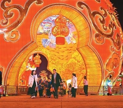 敘事主題的豐富,讓彩燈成為講述中國故事的載體。180米長的《木蘭傳奇》燈組步道上,花木蘭的颯爽英姿與家國大義徐徐鋪展,傳統(tǒng)人物的精神內(nèi)核在現(xiàn)代光影技藝演繹下直抵人心。抬眼望去,全長210米、高達(dá)32米的鯤鵬燈組震撼全場,“鯤鵬展翅”的視覺奇觀與當(dāng)代載人航天、深潛等場景光影交融。福祿廣場,藻井如蓮花般旋轉(zhuǎn),光影“福”字“從天而降”落入游客掌心,讓“伸手接福”從“吉祥話”變成可觸碰的溫暖記憶。