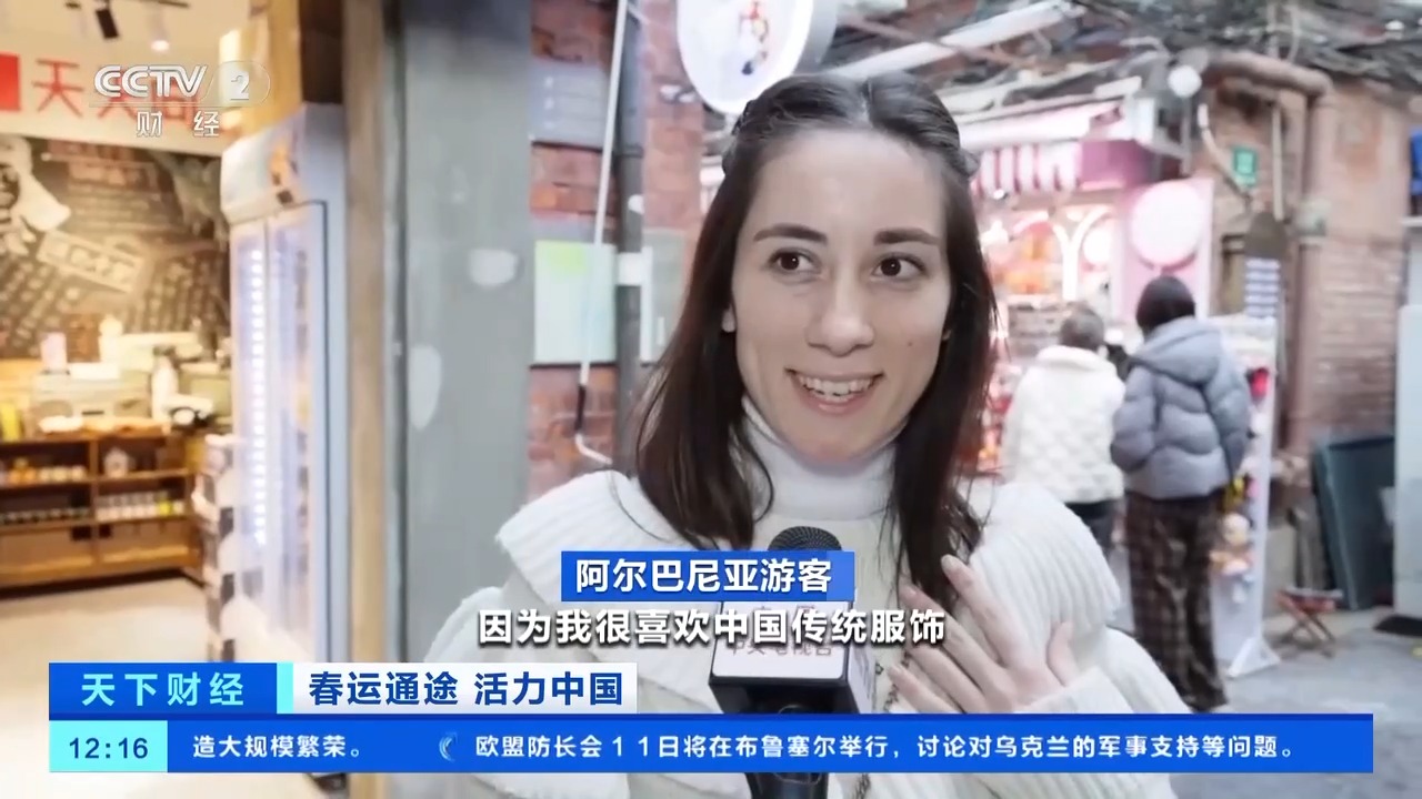 阿爾巴尼亞游客:準(zhǔn)備給我外甥和我自己買衣服,因?yàn)槲液芟矚g中國傳統(tǒng)服飾,我想在我的婚禮上穿著它。