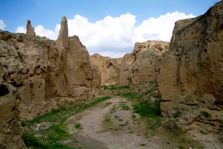 從水洞溝到紅山堡之間,有長(zhǎng)約4公里的峽谷,本是大自然的“杰作”,但明代時(shí),這又成了長(zhǎng)城“深溝高壘”防御體系的重要組成部分。峽谷兩岸經(jīng)常年的風(fēng)雨剝蝕,溝壑縱橫,深厚的黃土經(jīng)長(zhǎng)期的雨水沖刷,土柱突兀壁立,造型奇特,形成了“土林”!巴亮帧庇纸(jīng)大自然鬼斧神工雕琢般地形成千奇百怪的形像。有的像僧人登高遠(yuǎn)眺,似在期待來者;有的宛如一對(duì)戀人,相親相依;有的如夫妻相敬,雙方對(duì)拜,琳琳總總,各具形態(tài),給人以無盡的遐想。在峽谷的兩邊的崖壁上有明代將士修建的藏兵洞,它充分顯示了古代人民的軍事智慧和聰明才智。