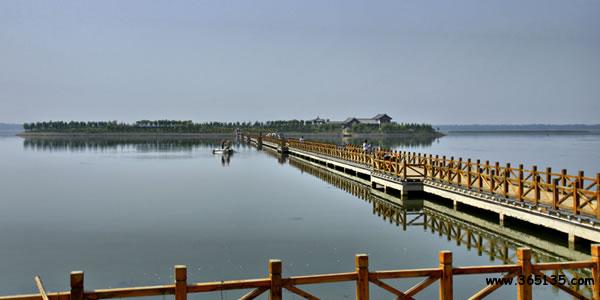 浮龍湖:位于單縣的西南部,距單縣城15公里,它南依凹凸不平的黃河故道,北接一望無際的平原,F(xiàn)屬單縣浮崗鎮(zhèn)管轄。由浮龍湖和月牙潭兩部分組成。浮龍湖呈東西狹長形狀,東西長約1⒉5公里,南北寬⒉5公里,面積3⒈26平方公里,水深約⒊5-5米,月牙潭呈狹長形狀,面積約5平方公里。浮龍湖和月牙潭水面積約 3⒍26公里,占浮崗鎮(zhèn)總面積的 2⒌18%。水質(zhì)純凈無任何污染。有閆潭灌區(qū)南引黃干線,小浪底焦莊水閘兩條送水途徑,長年可保持一定的蓄水量。據(jù)有關(guān)史料記載浮龍湖成型于明朝嘉靖年間的黃河決口,黃河在此決口一瀉千里,沖積成兩個(gè)大洼地,隨著黃河的改道和地質(zhì)地貌變動(dòng),形成兩個(gè)相對(duì)獨(dú)立的封閉的大潭坑,在當(dāng)?shù)亓鱾髦犊由畈灰姷字蓖|海龍宮,每逢農(nóng)歷2月22日龍?zhí)ь^時(shí),龍王派其四子來此處察看民情的傳說。