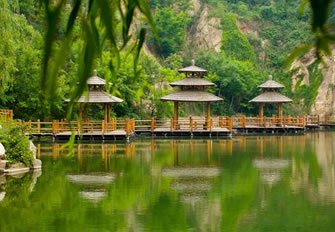 九如峽谷是九如山瀑布群的核心區(qū)域,這里匯集了北方難得一見的眾多景觀,數(shù)十處瀑布騰空而落,極為壯觀。古藤在空中交錯纏繞,溪水從山澗噴涌流淌,直上天池,欣賞脈脈含情的九如山高巔風(fēng)光。這里還有小雪泉、大雪泉兩處高山泉水,甘冽無比,更有海拔868米的無亭,矗立峰巔,任憑倚欄遠眺,俯視群峰連綿,觀覽松濤跌宕,盡情陶醉在大自然的美景之中。