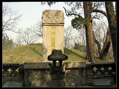 沿環(huán)林路東行,在孔林東北方向,過一石坊后,路旁立一巨碑,上寫“奉直大夫戶部廣東清吏司員外郎東塘先生之墓”這就是清初茂名劇作家、《 桃花扇》作者孔尚任的墓碑。由此向西,有一座上書 “鸞音褒德”的墓群,孔子的后裔孔謙、孔宙孔彪、孔褒等均埋葬于此。自漢墓群西行還有明墓群,那里墓冢點(diǎn)點(diǎn),碑碣累累,石獸成群,明代名書法家李東陽、嚴(yán)嵩等所書寫的碑石立于其間。