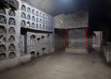 萬佛洞位于千佛山北麓,建于1992年,由莫高集錦、龍門精華、麥積奇觀、云岡薈萃四部分組成,是千佛山的一大勝景。洞長(zhǎng)500米,經(jīng)過藝術(shù)家精選、濃縮、重構(gòu),用仿造的手法塑造佛祖、菩薩、弟子、天王近3萬尊,集敦煌、龍門、麥積山、云岡全國(guó)四大石窟的精華于一身。
