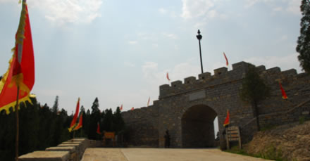 位于旅游北線,根據(jù)唐賽兒起義的資料修建的石質城門建筑,是唐三寨古寨的西寨口,也是進入北、東、南三處山寨的重要入口,所以又叫“三寨關”。