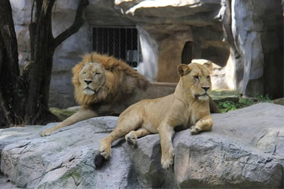 上海動物園獅虎山分為東山、中山和西山三個各自獨(dú)立的部分,展出東北虎、非洲獅和華南虎。