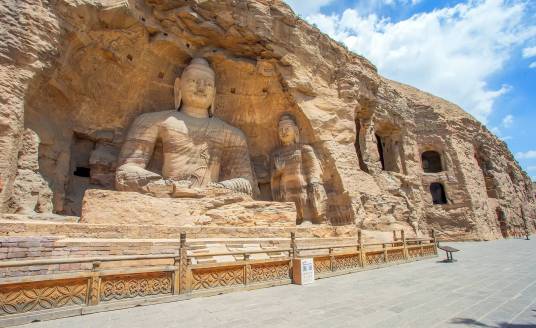 云岡石窟,原名靈巖寺、石佛寺。位于山西省大同市西郊17公里處的武州山南麓,是中國(guó)著名的石窟群之一。云岡石窟的開(kāi)鑿始于北魏時(shí)期,北魏皇始三年(398年),道武帝拓跋珪將都城從盛樂(lè)(今和林格爾縣)遷至平城(今大同市),武州山成為盛樂(lè)與平城之間的交通要沖。文成帝拓跋濬即位后,令沙門統(tǒng)曇曜主持復(fù)法大業(yè)。在文成帝的支持下,曇曜選擇了鐘靈毓秀的武州山,"鑿山石壁,開(kāi)窟五所,鐫建佛像各一,高者七十尺,次六十尺,雕飾奇?zhèn)ィ谟谝皇?quot;。云岡的大部分洞窟在孝文帝元宏遷都洛陽(yáng)前完工,但是造像工程則一直延續(xù)到正光年間(520~525年)。云岡石窟的開(kāi)鑿歷時(shí)約150年,歷經(jīng)北魏、東魏、西魏、北齊、隋、唐等朝代,現(xiàn)存主要洞窟45個(gè),大小窟龕252個(gè),石雕造像59000余尊,是中國(guó)石窟藝術(shù)寶庫(kù)中的瑰寶。