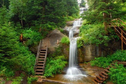 九重瀑布位于寧武縣東寨鎮(zhèn)大溝村腳下,在情人谷景點(diǎn)與馬侖草原之間,距東寨鎮(zhèn)約12公里。因其地勢高峻,天藍(lán)氣清,有似入天宇之感,故名“九重瀑布”。瀑布從森林密布的山谷石崖上直瀉而下,全場300余米,落差高達(dá)55米,流量120m/s,負(fù)氧離子28000個/cm,暑期最高氣溫19°C。