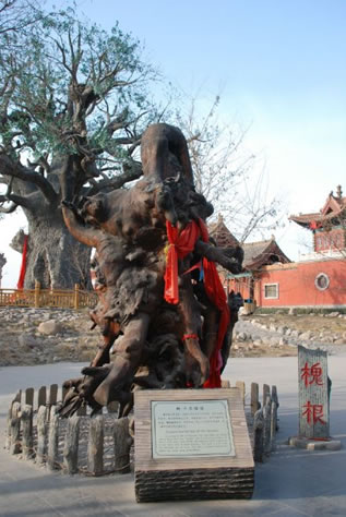 據(jù)考古人員鑒定,此根大約生長(zhǎng)在宋元時(shí)期,距今約1000年左右,遠(yuǎn)在明初移民之前;备叨6.2米,其中外露部分4.2米;备P(pán)枝錯(cuò)節(jié),形象奇特,能讓人產(chǎn)生豐富的聯(lián)想,是一棵罕見(jiàn)的大型古槐真根。