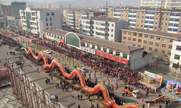 龍燈:也叫“龍舞”。身長20米左右,直徑60---70公分,內(nèi)用鐵絲做成圓形,安上燈泡或蠟燭,外用紗布包裹涂色而成。舞龍者由數(shù)十人組成。1 人在前用繡球斗龍,其余全部舉龍,表演“二龍戲珠”、“雙龍出水”、“火龍騰飛”、“蟠龍鬧海”等動(dòng)作。