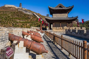 關(guān)城以西的舊關(guān)城俗稱為鐵里門。兩關(guān)之間用石砌長城相連,并建造了敵樓、烽火臺等,形成一組完整的防御體系。在舊關(guān)城附近有一段明代建造的白草口長城,是中國目前保存最完好的長城段之一,該段長城全長5033米,墻高6-8米,底寬5米,頂寬3米。每隔120米左右,便建烽火臺和敵樓各一座,在險(xiǎn)要的地段,還設(shè)置了堡寨、壕溝和暗門等。它的東西兩端向北延伸后,最終與外長城相連。