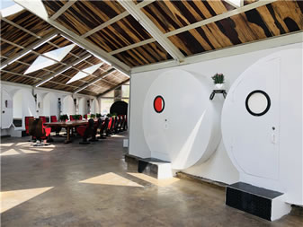 蝸牛公寓位于云岡石窟景區(qū)東山,是東山菩提藝術(shù)區(qū)的一部分,由云岡石窟研究院主導(dǎo)創(chuàng)意,用廢舊水泥管、廢舊鋼鐵等廢舊材料打造出來(lái)的綠色環(huán)保寫(xiě)生建筑。走進(jìn)“蝸牛公寓”,內(nèi)含會(huì)客廳、28間臥室,洗漱臺(tái)、衛(wèi)生間,其中地下公共部分還配有電影放映室、臺(tái)球室、酒吧、咖啡廳等公共休閑娛樂(lè)設(shè)施,長(zhǎng)廊的墻壁,藝術(shù)家或藝術(shù)院校學(xué)生可以隨意涂鴉。這個(gè)特別隨意且有藝術(shù)范兒的空間,為到云岡石窟景區(qū)寫(xiě)生創(chuàng)作、旅游休閑的人們提供了優(yōu)質(zhì)舒適的住宿、創(chuàng)作、娛樂(lè)空間。