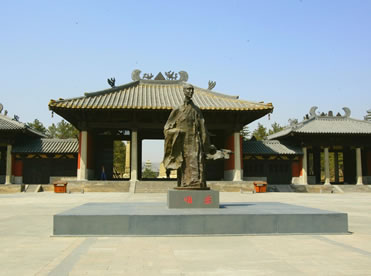 曇曜廣場(chǎng)位于云岡石窟景區(qū)入口處,占地6000多平方米,是為紀(jì)念云岡石窟的開(kāi)創(chuàng)者曇曜高僧而建。整個(gè)廣場(chǎng)及亭廊建筑渲染著濃重的北魏皇家氣象,廣場(chǎng)中央的曇曜雕塑以瀟灑大器的寫(xiě)意手法,塑造了一代佛門(mén)大德的藝術(shù)形象,高古清逸,似篳路藍(lán)縷,風(fēng)塵仆仆,卻是袈裟飄逸,似乎從千年前的塵埃中走來(lái)。公元460年,北魏文成帝復(fù)興佛法,命曇曜高僧主持開(kāi)鑿了規(guī)模宏大的云岡石窟,因此,曇曜不僅是開(kāi)鑿云岡石窟的創(chuàng)始人,也是北魏著名的佛學(xué)大師和譯經(jīng)大家,是北魏佛教昌盛的奠基人。