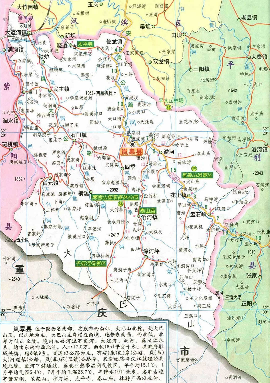 境內(nèi)交通便捷,資源豐富。全縣四級以上公路總里程268.8公里,其中207省道貫穿6個鄉(xiāng)鎮(zhèn),98%的村修通 了村級公路,嵐城、大洞等公路的貫通,形成了東通平利、西到紫陽、北連安康、西接重慶的公路交通網(wǎng)絡(luò)。航運(yùn)蓬勃發(fā)展,建永久性碼頭2個,營運(yùn)航運(yùn)里程114公里。